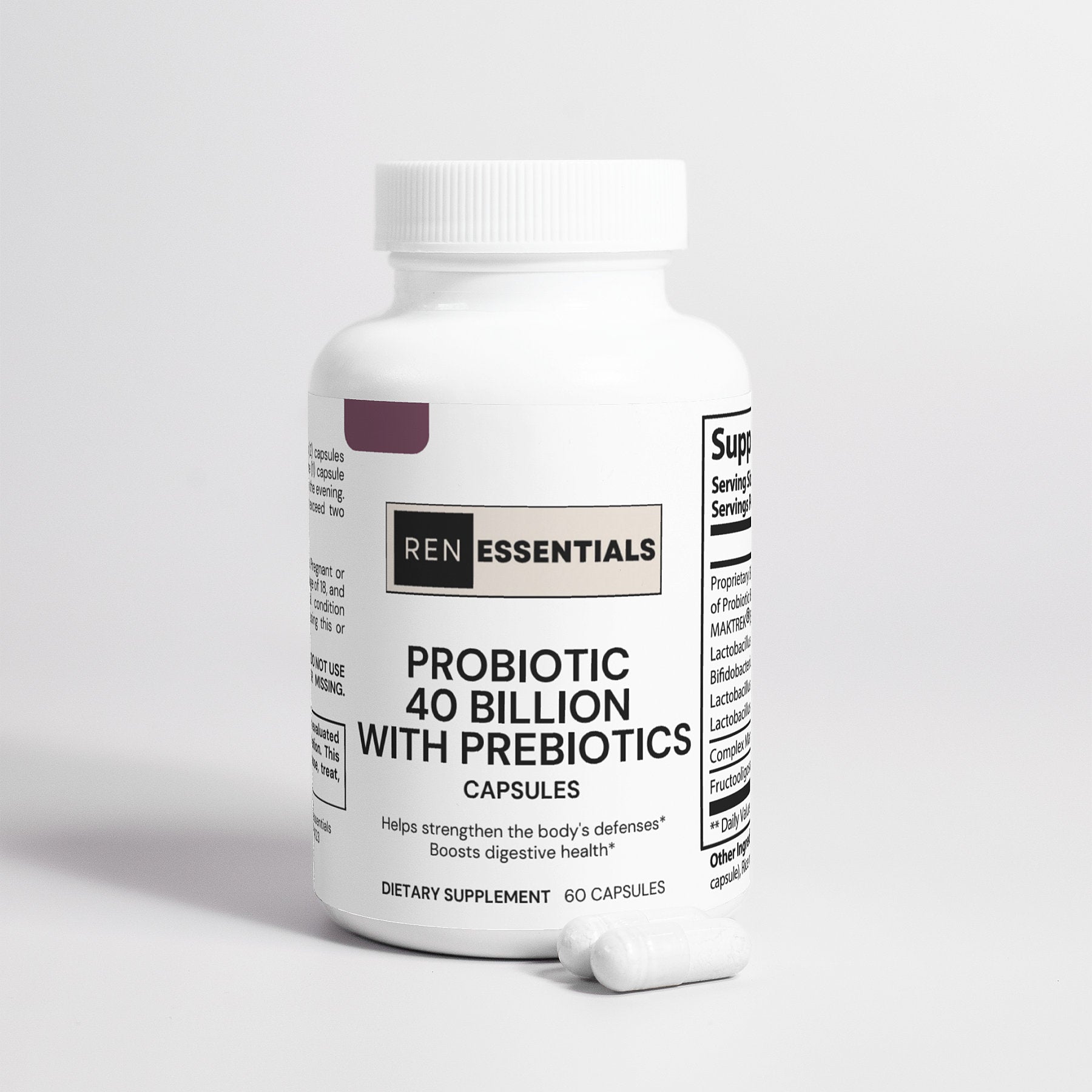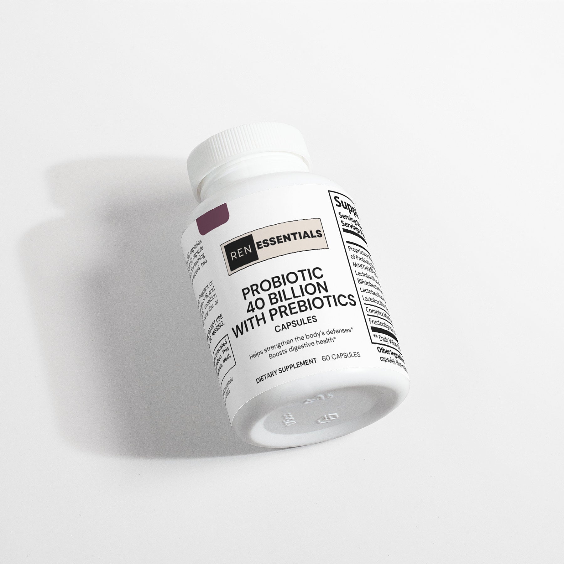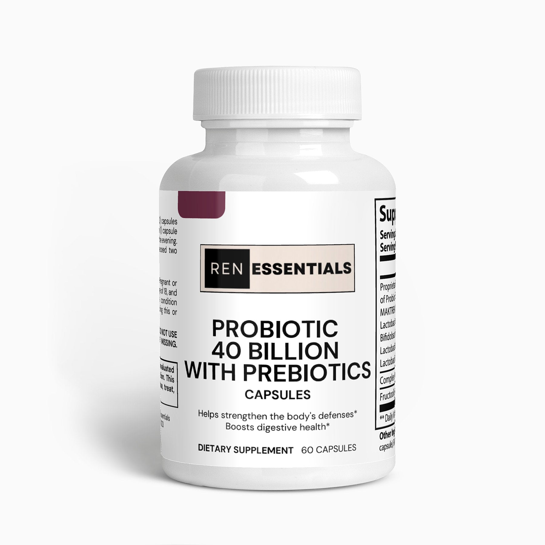Probiotic 40 Billion with Prebiotics is a blend of four probiotic strains: Lactobacillus Acidophilus, Bifidobacterium Lactis, Lactobacillus Plantarum, and Lactobacillus Paracasei.
